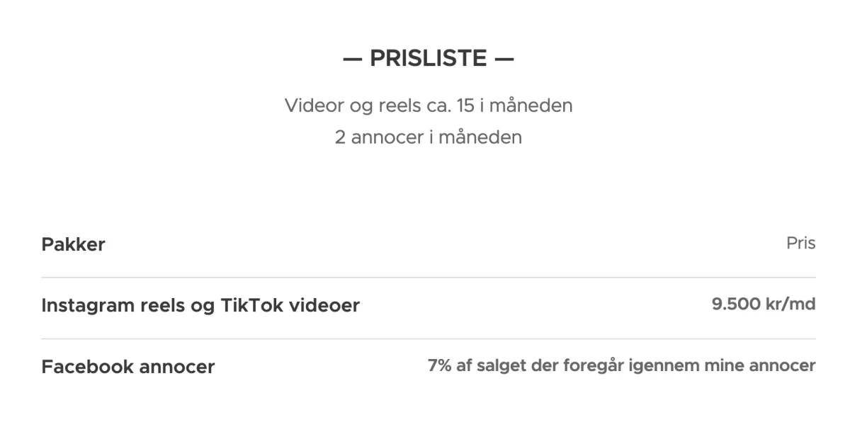 På HHX lærer jeg om markedsføring, målgrupper, kommunikation og branding, og jeg kan derfor omsætte teori direkte til praksis. Det betyder, at jeg kan hjælpe med at lave opslag, stories og korte videoer, der præsenterer jeres produkt på en autentisk og troværdig måde – ikke bare som reklame, men som indhold folk har lyst til at engagere sig i. Ud over det ved jeg hvad der trender på platformerne og kan derfor følge med på trenden.